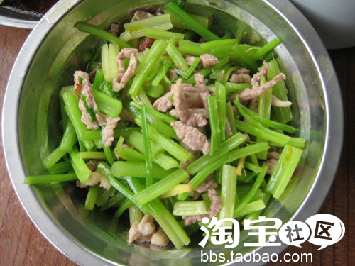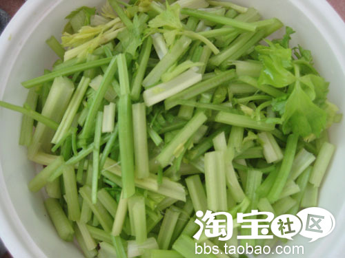 我发现儿子很喜欢吃芹菜,个人认为是他刚长出大牙,觉得咬上去比较脆,而且有点嚼劲。现在小子基本上哪种菜都可以吃了,这样我的做法可以更多些。
