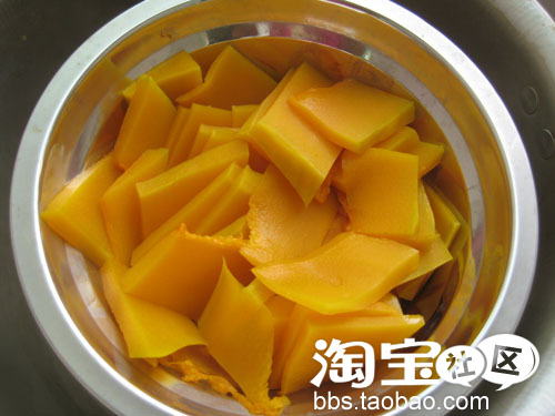 南瓜的做法是,去皮后切片,隔水蒸,约15分钟可以变软。蒸的比煮得南瓜要甜很多,儿子很喜欢单独吃,也可以和饭拌在一起。