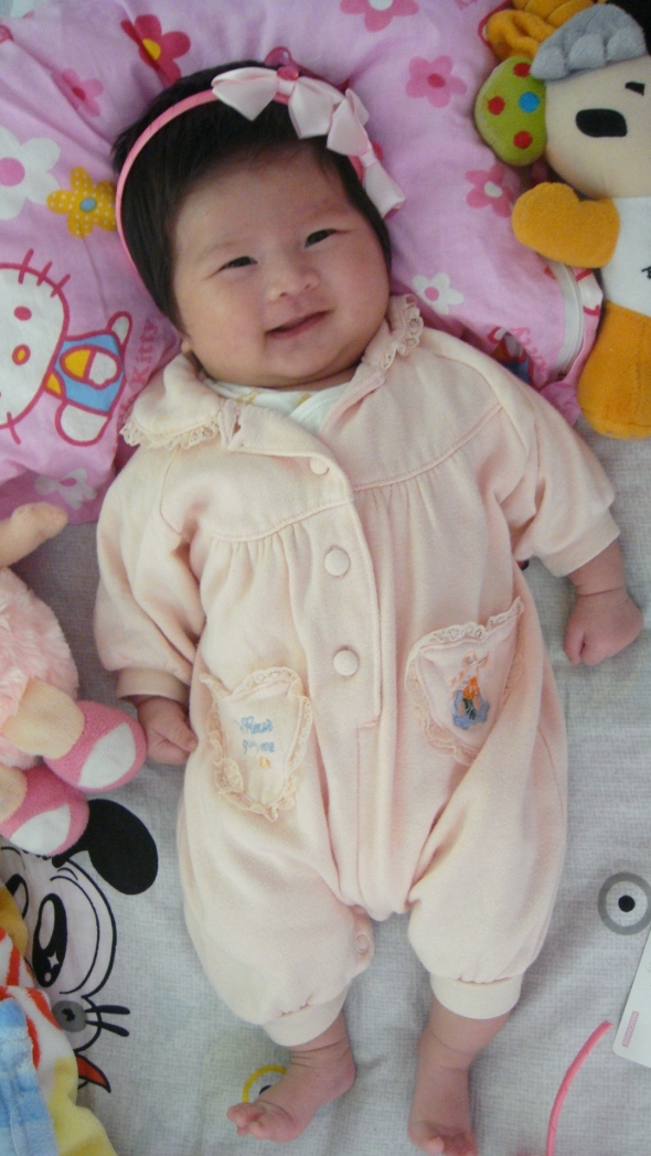 十个月终到了,小莉莉的到来。给我带来了好多好多的幸福。大家来看一下小莉莉的相片吧。一个月时拍的。