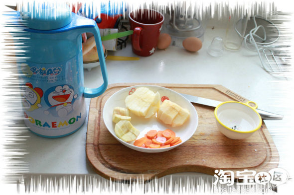 一. 首先要准备好宝宝爱吃的水果和帮助吸收的附料。