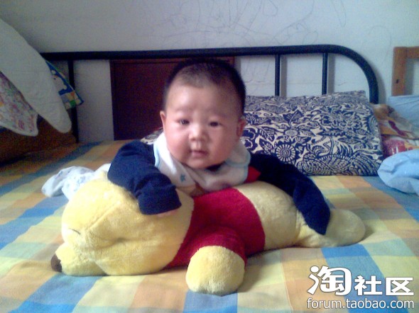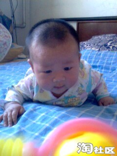快到百天的时候,我学会翻身了,妈妈总是拿个好玩的在前面逗引我往前爬,这个妈呀,一会儿不让我闲着,看我奋力前行,眉毛都累红了,哼!