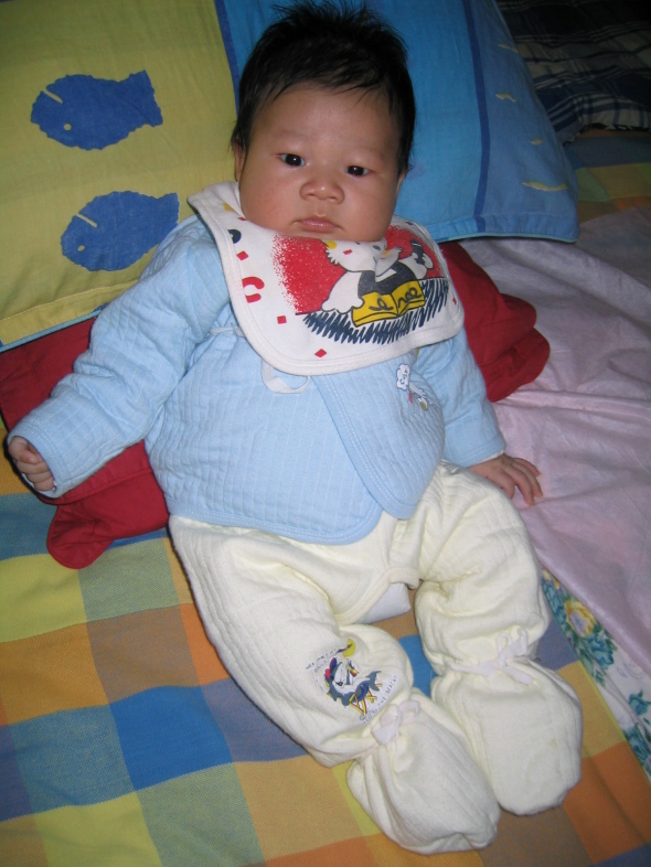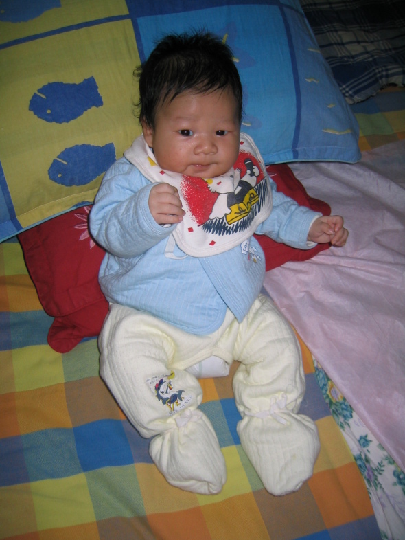 下面这几张是我尿床了,还兴高采烈地坏笑,妈妈不给我穿裤子,要给我拍几张羞羞照作为惩罚.哼,我才不怕呢!!!