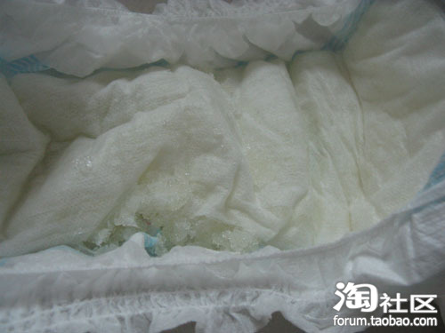 这一挑,问题出来了,你说怎么着?~~???我抬头问爸B:这尿布,怎么裂了个口?爸B目然。。。我怎么知道。。。我开始干笑了,再挑挑看,裂缝里全是这些东西。。。。。开始晕倒了`````这东西是不是尿布的吸湿剂啊?呵呵呵`````这下怎么办?化验单都开了?要不要拿给医生化验呢?