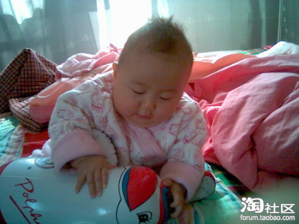这是宝宝5天的样子,你看她看东西多专注呀!