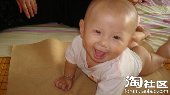 嘻嘻,天气比较热,所以,午睡的时候没给她穿裤裤,~~~~她不会往前爬,只会倒着爬~~晕呢