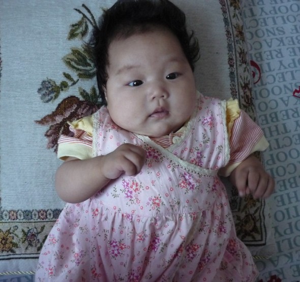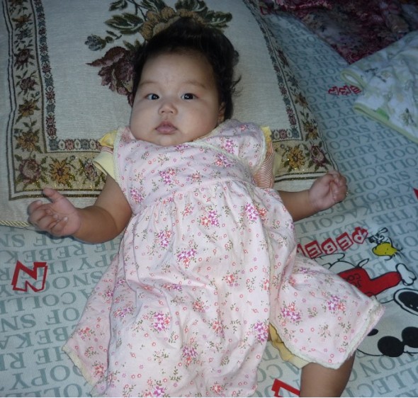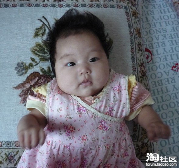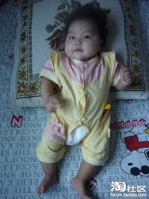 我家宝宝出生时,体重5350克 身长60公分 她生出来时可胖可胖了,因为吸入羊水转到了监护室所以没有了刚刚生出来的照片了,现在言归正传,开始看看我家的小美女吧!自己照的照片,不是很专业,献丑啦!(这个是46天的时候照的,她爸总看着她有点像韩国宝宝)