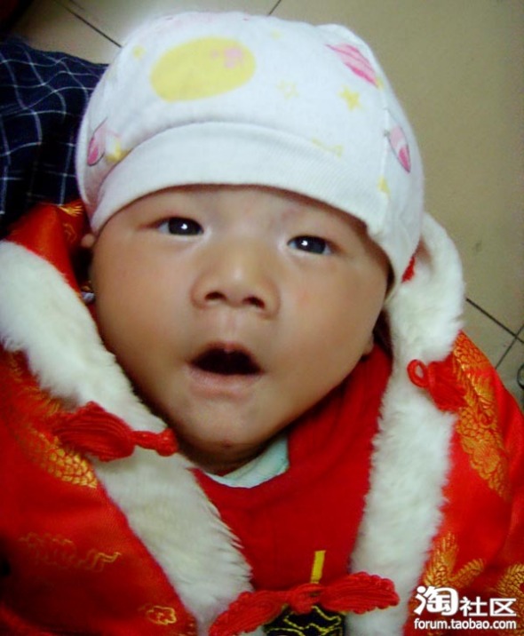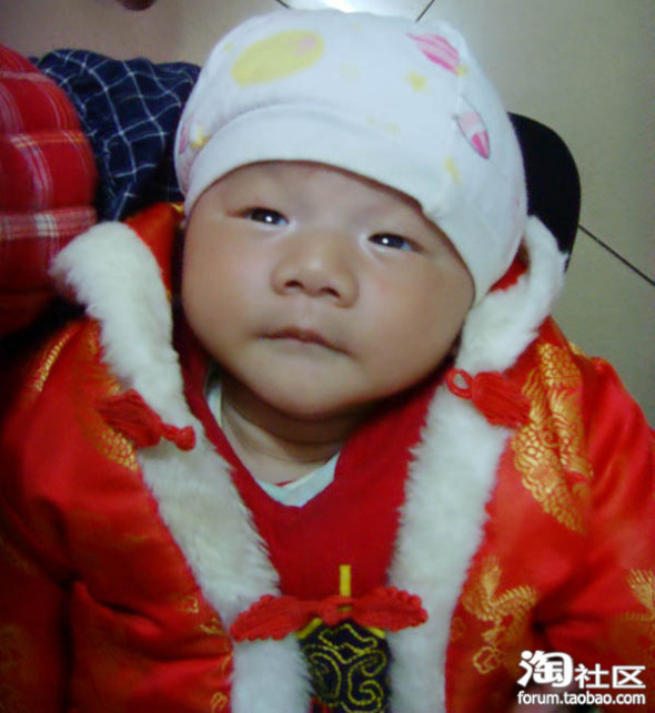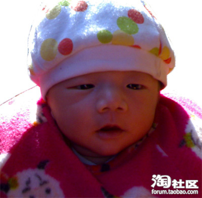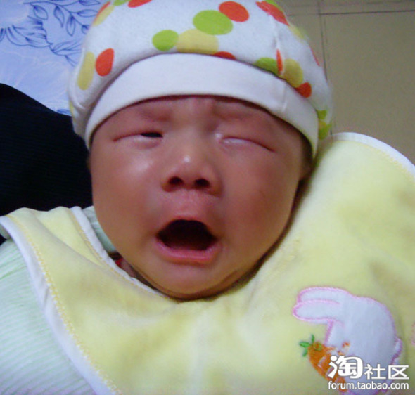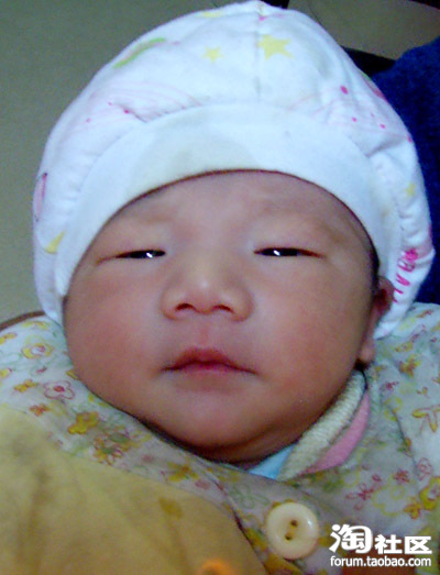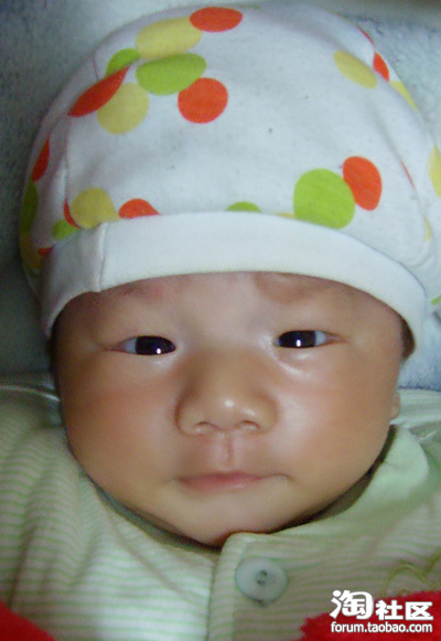 宝宝生阴历12月,天气比较冷.一出院,他就感冒了.每晚上鼻子塞得像风车一样呼呼叫.把我心疼得呀.瞧,脸得瘦尖了: