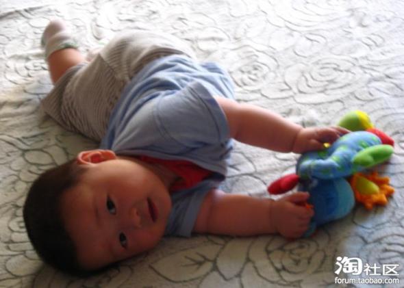 我大点了,已经很好玩了,开口又很早,4个半月会叫妈妈,6个月会叫爸爸。所以他们经常把我弄床上这么玩我。可惜啊,哥运动细胞没有,那时候还不会翻身呢。