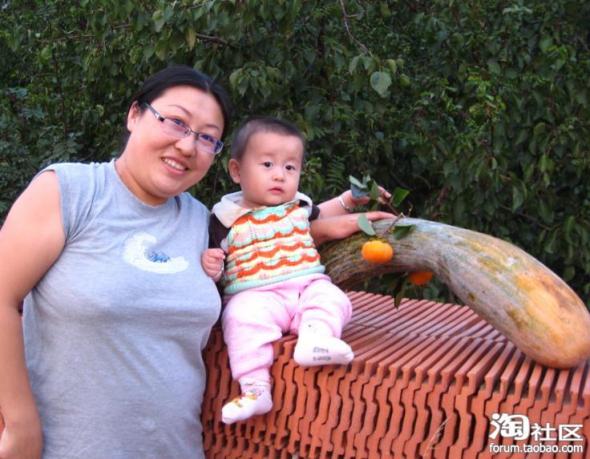 妈妈壮硕的肚子,跟旁边的大南瓜有得一拼。