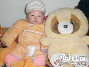 看我厉害吧。头都能抬起来了哦。我与小熊哪个更可爱?呵呵