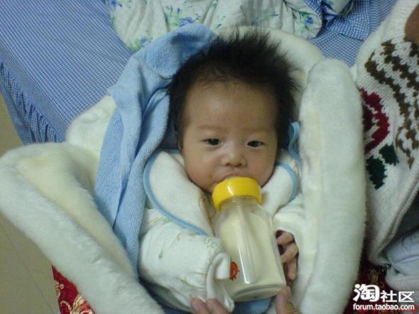 那时黑黑丑丑的,不过头发却是又黑又多又长。会自己拿奶瓶喝奶奶了。