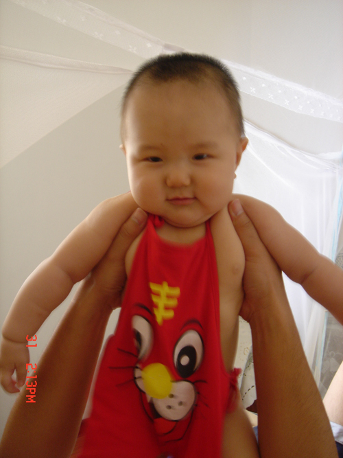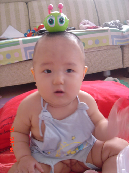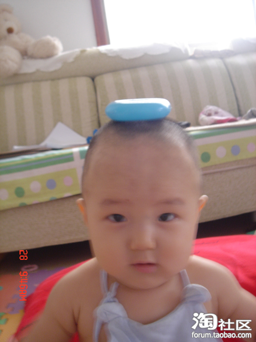 因为宝宝比较胖,夏天的时候会把头发剃的短短的,