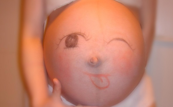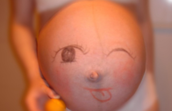 (很多亲们不知道怎么弄的。这是在肚子上面画的。呵呵很可爱吧)