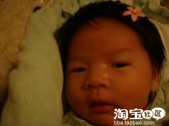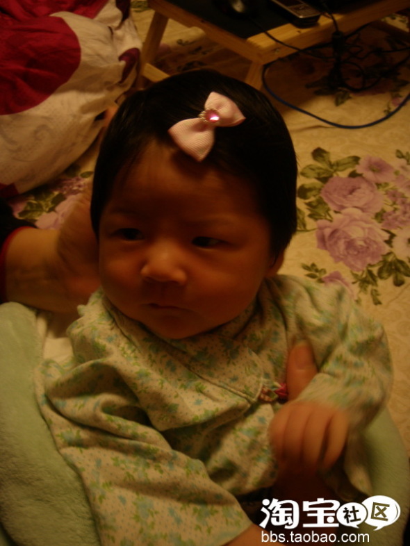下面来张我四十几天的照片 妈妈给我买了好多好多美丽的发夹哦 呵呵 都粉可爱的呢
