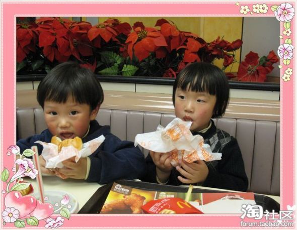 (垃圾食品不主张吃哦!但是我觉得应该让他们偶尔吃一下,让他们知道麦当劳是什么。同时告诫他们,垃圾食品不可多吃,偶尔的偶尔哦!)