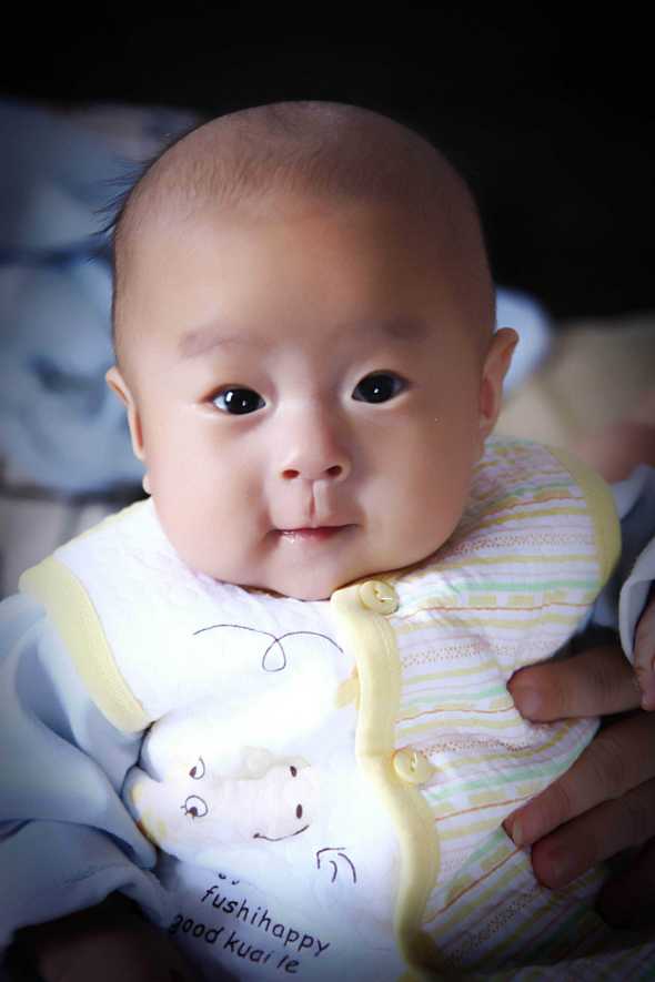 这是三个月的时候照的,好可爱哦!!那时候的眼睛圆圆的,瞳孔黑黑的,太可爱了!粉粉的脸蛋,好想要滴水一样!好想抱着不放哦!