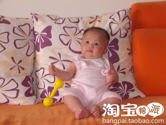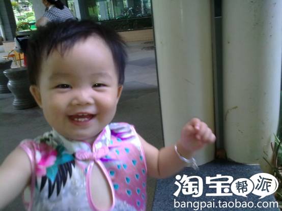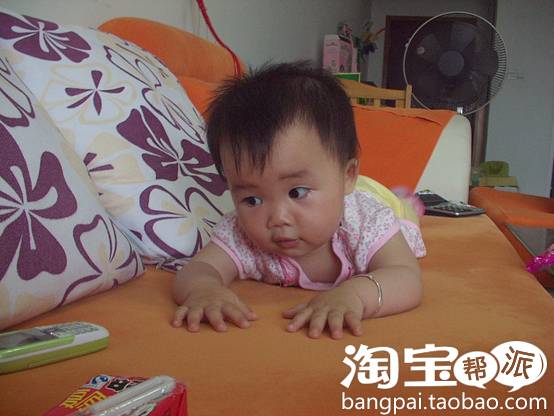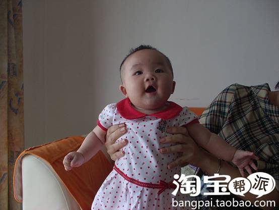 宝宝五个月了。身上穿的衣服漂亮吧?是她爸爸的同学设计的,大老远从杭州快递到广东来。呵呵。我老公学的就是服装设计专业。他们同学毕业后做这一行的挺多。所以宝宝不愁衣服穿