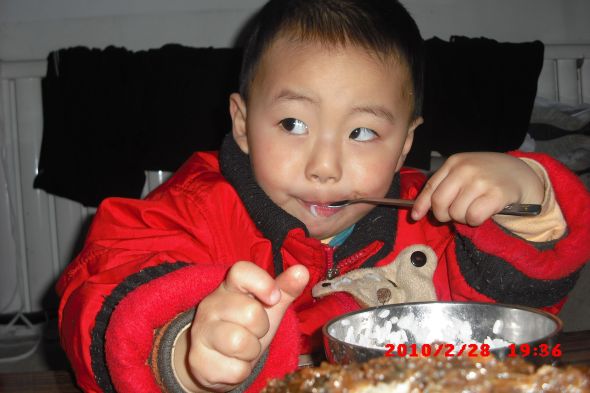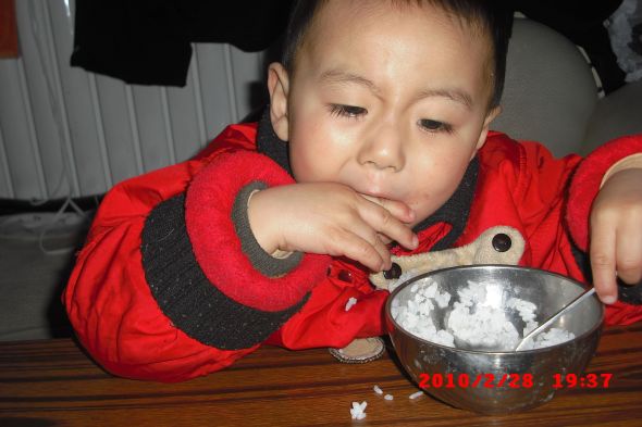 嗯,碗里的米粒不多了!