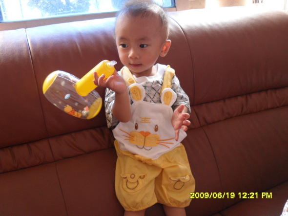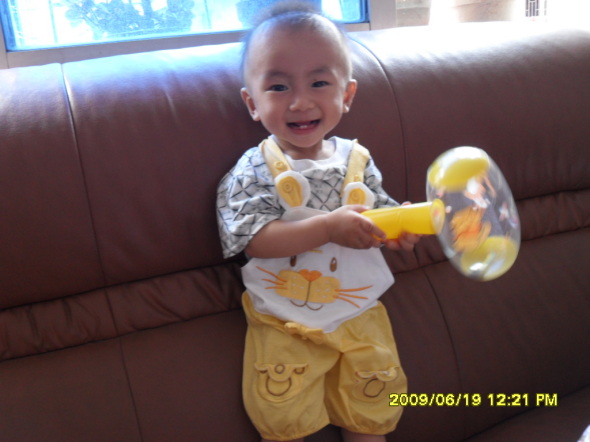 我赶紧更正说:“不是‘妈’,是‘狗’。扬扬,看着妈妈的嘴嘴:‘狗,狗。’扬扬伸手拍拍我的嘴巴咧开嘴开心地笑了。唉,这小鬼!