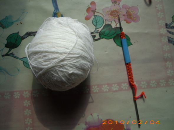 这个是用来修饰的白线和钩花针。 宝奶奶三下五除二就把衣服周边钩好白色装饰了。