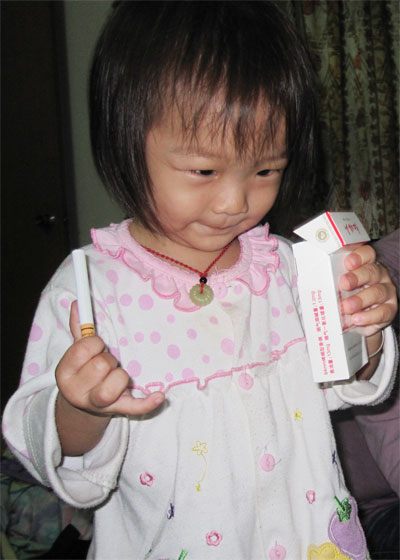 嘻嘻,我偷到一包烟,拿来玩玩