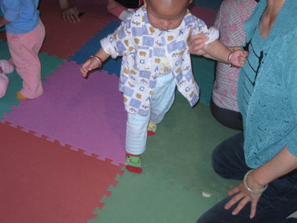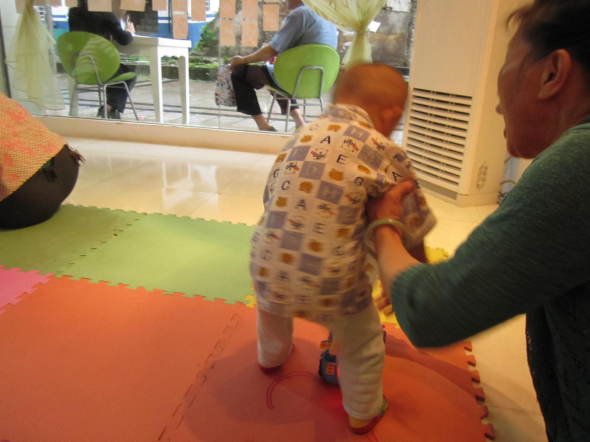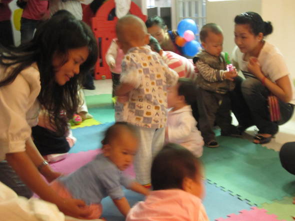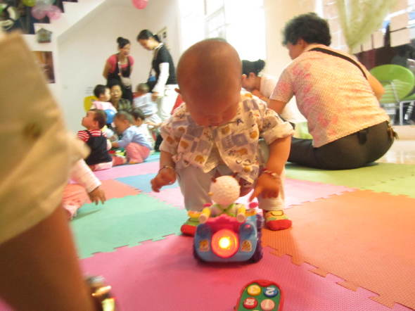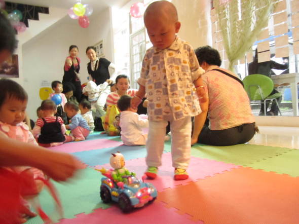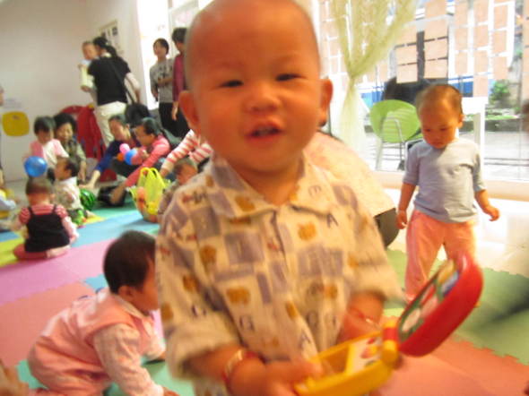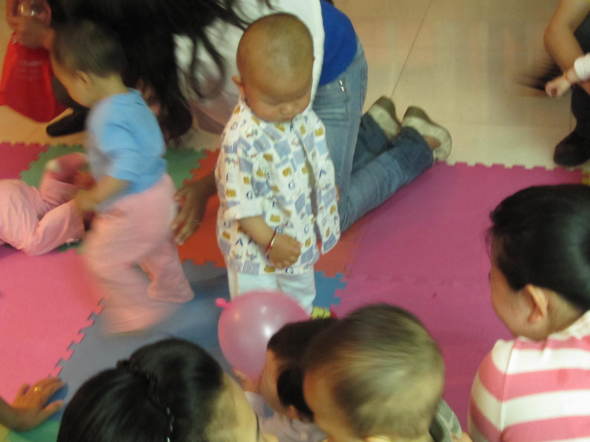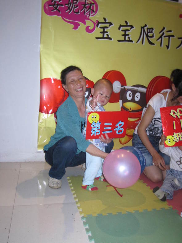 咱家公子一岁2个月啦,现在只走路啦,小的时候10个月就会走啦,生下来就要竖着抱的,所以爬行比赛,对他来说就是跑步比赛。
