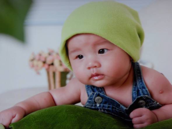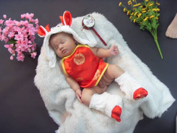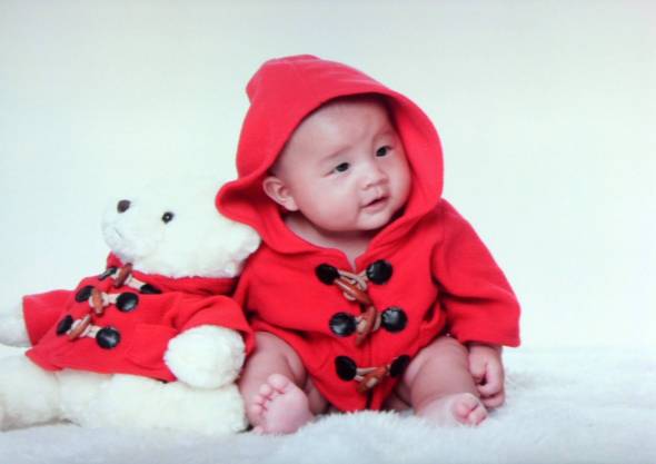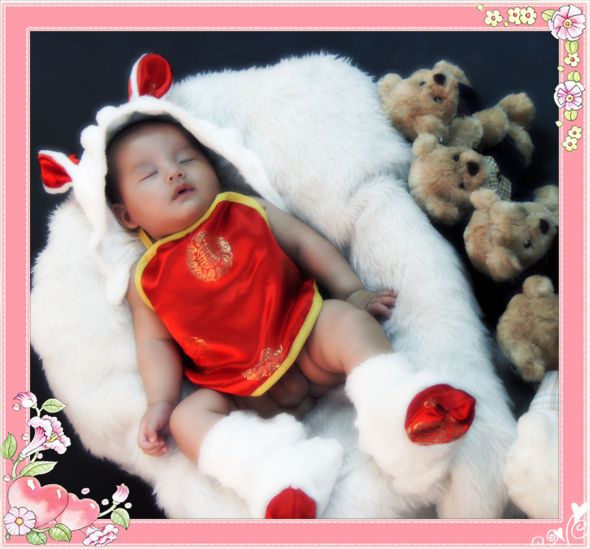 发几张宝宝的百天照~照相那天中途就睡着啦~↓