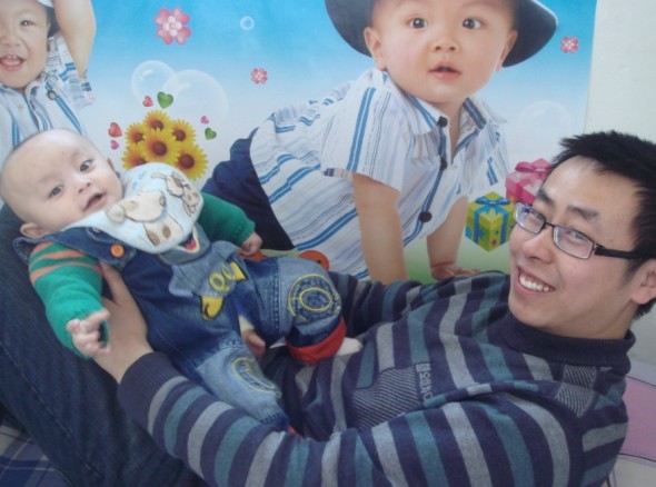 上宝宝的亮照,看这父子俩笑的多甜呀