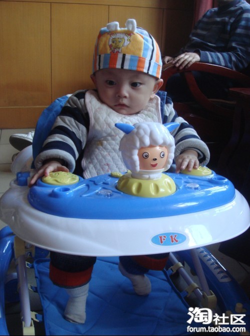 宝宝今天发出了一声ma的音,好开心呀,宝宝今天坐在学步车里了,现在的学步车越来越好了,一个车车就三种用法了,呵呵~~~宝宝还小不能坐的时间太长所以就坐了一小会,给他拍了几张照片