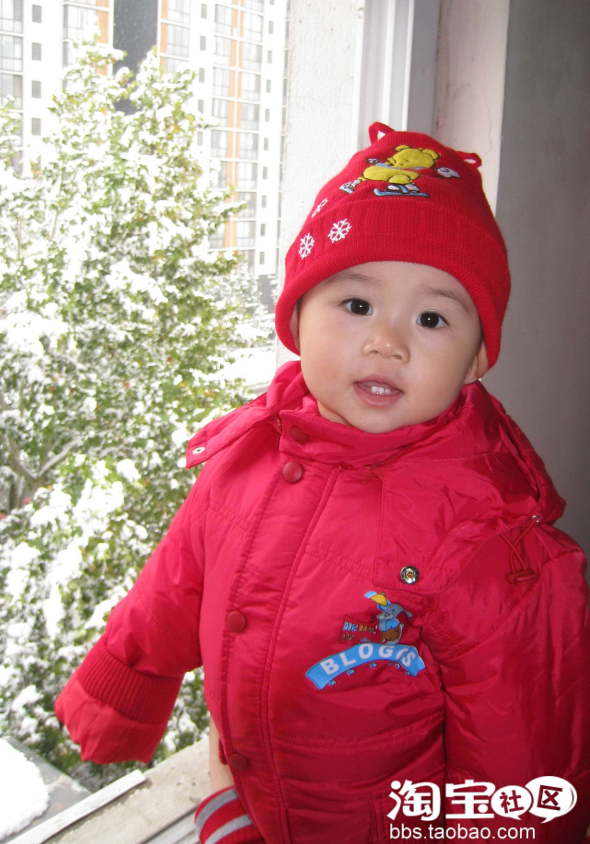 这是去年北京下的第一场雪,在树叶还没落的时候。看偶身后的窗外,叶子上落满了厚厚的雪,好漂亮!爸爸说老天爷还真给面,虽然北京冬天冷,但雪可也是个稀客哦,偶刚知道雪的时候就来了场大的。真好!