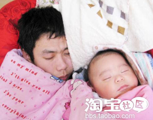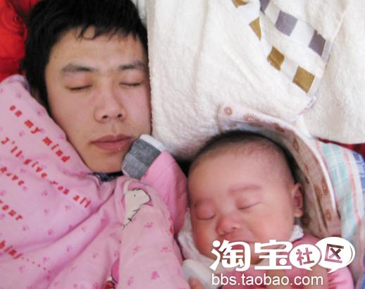快过年啦,我的儿子40天啦!给他洗了个澡,剃了个小平头,和爸爸依偎这睡觉。这个时候的宝宝长的很想爸爸。呵呵脸每天都在变大,这个时候已经很大啦!我还以为孩子是得了大头病那!医生说只有喝了劣质的奶粉才会得,吃母乳不会的。这样我才稍稍放心啦!