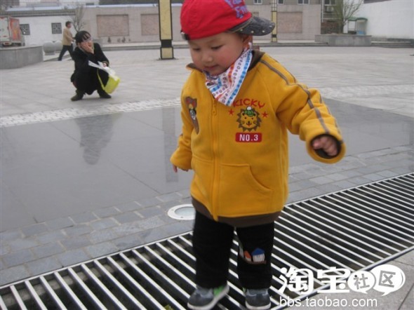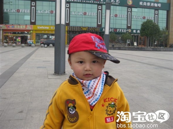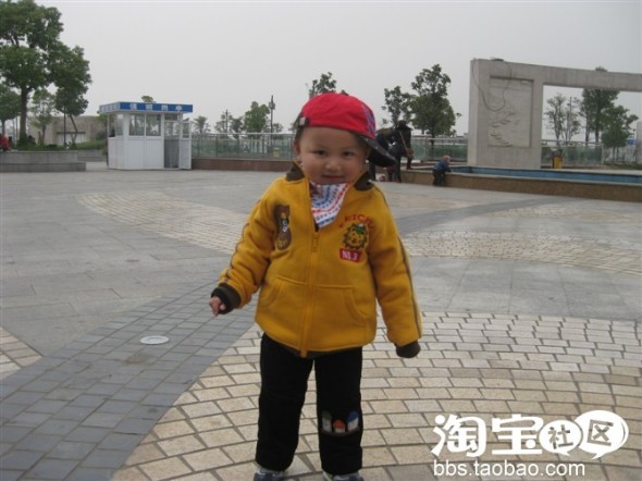 跳跳穿的小上衣、头上的帽子、三角巾都是我在淘宝淘的哦