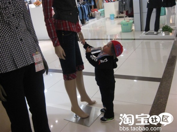 在商场看见模特,跳跳很开心的要和阿姨握握手