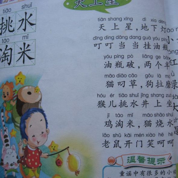 接下来,更惊喜的事情一个一个冒出来,很长的童谣,有时候我读过都忘记了,他一字不差的背出来,有时候VCD上放的歌曲也有几句学得来。