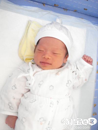 凌晨一点出生的,体重5斤4两,好小!当时的心情有点说不出来,既担心,紧张,又激动、兴奋。刚出生的照片在手机里没有数据线,没能取出来。当时觉得小家伙挺漂亮的,跟其它小家伙相比珊珊当时很干净,现在看看出生时还是挺丑的。嘿嘿