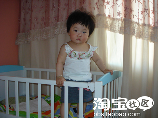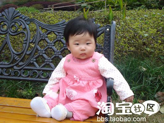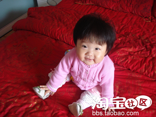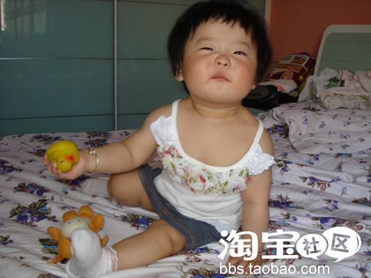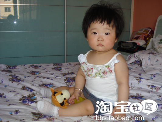 十个月大了。天气热起来了。珊珊妈买的漂亮衣服终于可以穿了