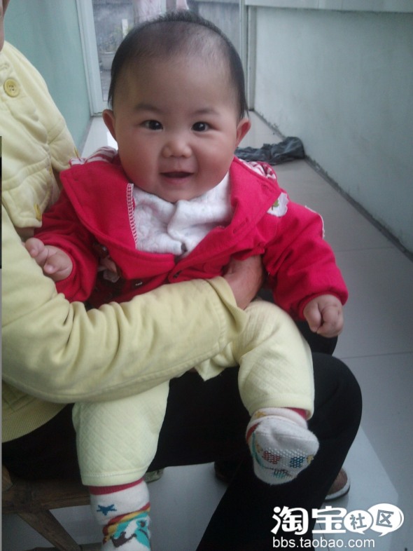 这是我可爱的宝贝 , 小名叫嘉嘉, 我习惯叫他嘉宝。 8个月零10天, 顽皮的很, 一天到晚手不停脚不停,不知道是不是遗传了他爸爸小时候的多动症,真是谁家的孩子就像谁。把我和我妈妈累的够呛,现在好像还有点依赖我来了,一离开他的视线就开始闹腾,害我都把我的店铺干晾着了,唉。。。。。。