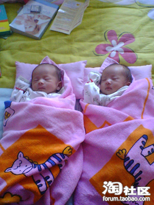 1.出生两天的我们,还躺在医院的床上。刚出生我们一个5.5斤一个5斤(知道那个是姐姐吗?)