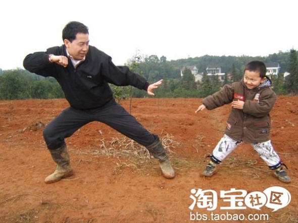早上起床,我站桩晨练,乖乖仔和乖爸跟着一起学习,呵呵