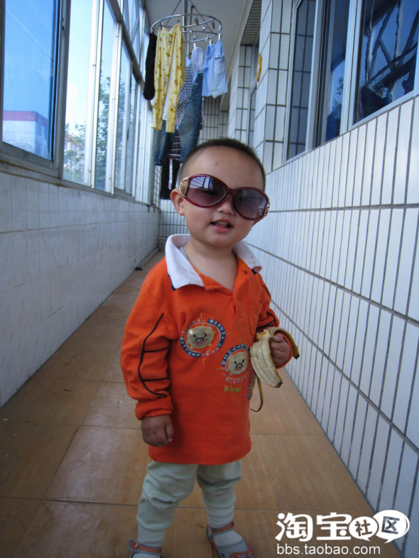 8、儿子两岁一个月(一):和儿子一起在街上走着,看到卖糖果的小摊就不走了,非要泡泡糖 ,我无奈,于是买了两块,一块他吃,另一块他派给妈妈吃(是必须吃的那种,呵呵)他放到嘴里,开始嚼,我担心他会咽下去,就跟他说:“儿子,泡泡糖是不能咽的,否则就会把小肚肚粘住了”他随即高兴地应了,嘴里还嘟噜着“不能咽,会粘住不不(说的是肚肚,发音不准”),好疼啊。。。。。。说着,肚子还一缩,表现出真的很疼的样子,可爱极了。