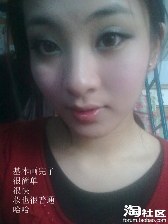 其实单眼皮不一定非要做成双眼皮的..可能我画的不好,请大家多多指点啊..今天上的化妆照片,都没有修片噢..因为相机前不久被偷,只能用手机拍摄了,不是很清楚,还请大家原谅