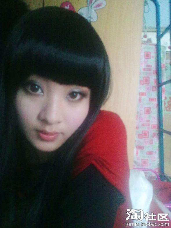 带个假发再来两张..一直没机会梳梨花头..齐刘海..买了假发,哈哈