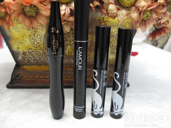 睫毛膏:1是兰蔻的,效果还好。2和3是国产的牌子效果不差于兰蔻的,有过之而无不及呀!特别是查名一猫那只,跟兰蔻真差不多,而且兰蔻的要卸,查名一猫,直接用水洗就可以