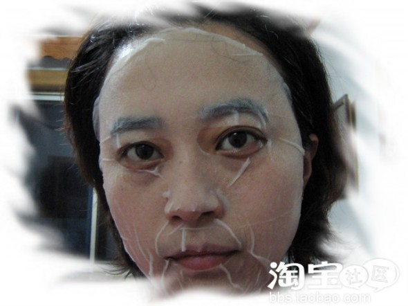 撕下面具 很服贴地在皮肤上 因为皮肤超干 吸收的很快 过十分钟左右时 又把袋子里的精华在脸上涂了一遍 感觉很滋润