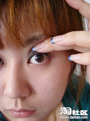 眼头部分的眼影要比眼尾宽一点 到眼球上方开始变细。