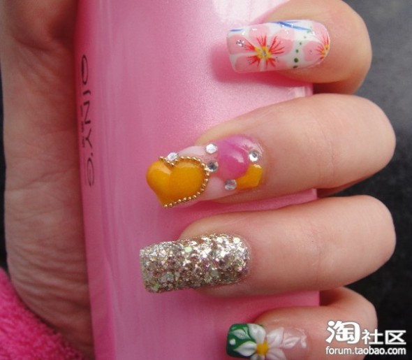 下面这些我以前做的指甲,也是我自己的手,做了拍好图片存在QQ空间,哈哈,今天发这个帖子用上了。