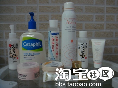 对于猫宝这种皮肤,我个人还是比较青睐药妆的。SANA,JUJU,肌研都是日本药妆中性价比颇高的品牌,保湿效果自然没话说。不过在花粉过敏期间,猫宝选择雅漾的大喷来取代化妆水,因为它舒缓镇静的作用使我的过敏现象在不到一个星期的时间里明显好转,小红疹不凸出来了,不太痒了,颜色也变暗变淡了。