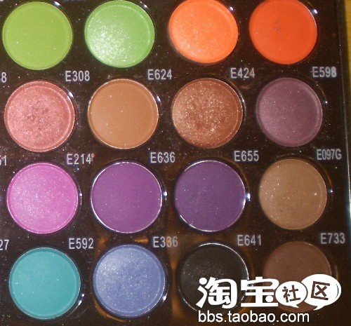 3.眼影色为(E424、E733、E641),先用E424填满整个眼窝,再用E733叠加在E424上,扫到眼窝的二分一处,最后用E641从睫毛根部叠加,并晕开刚才的黑色眼线膏,晕到双眼皮皱褶处为宜,下眼睑位置先扫上E733、再扫E641(从眼头到眼尾),注:上下眼影色要连接哦!