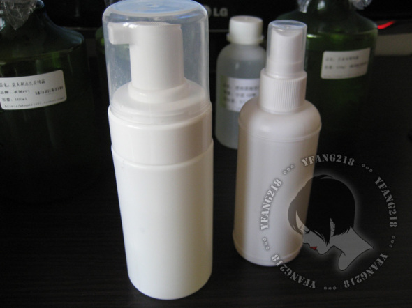这就是我DIY之后的成品,左面的是氨基酸洁面泡沫,右边是永久花保湿喷雾!我爱DIY ~~~
