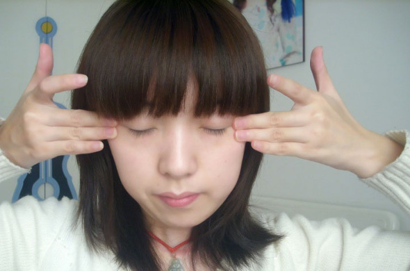 NO.1:用中指从外眼角开始按摩到内眼角和眉骨